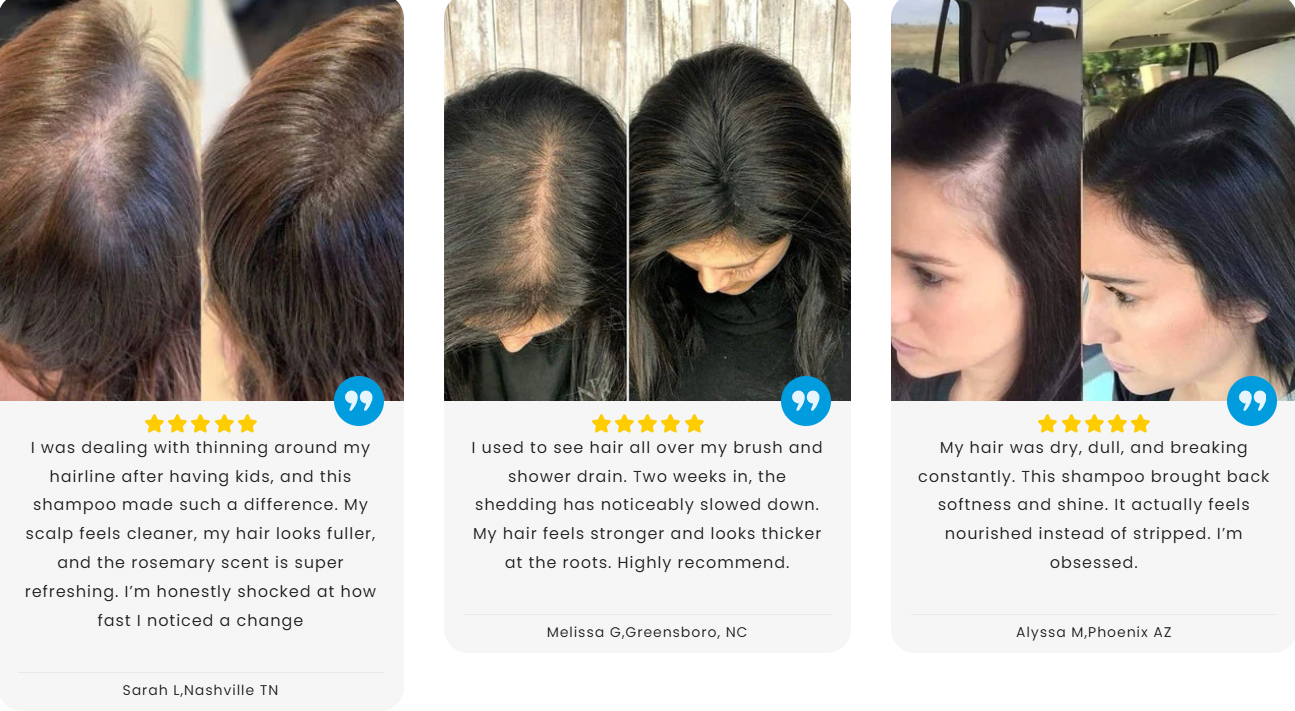 Thinning Hair • Dry/Damaged Hair • Postpartum Shedding • Receding Hairlines • Daily Care