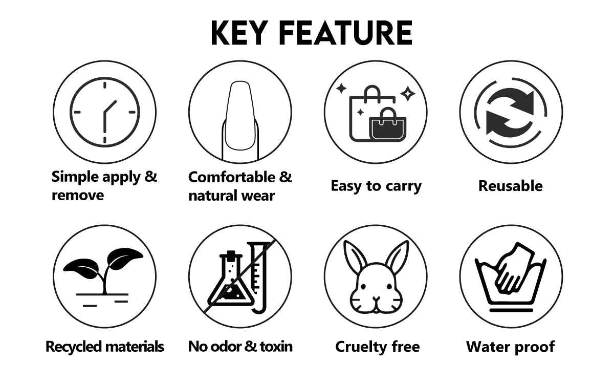 In order to extend the service life of the nail patch and save your cost, each package includes professional jelly glue (24PCS). Simply remove the jelly glue remaining on the nails and you can use the nail patch again.